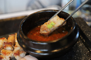 제주월드컵경기장 흑돼지 맛집 특제소스인 멜젓에 듬뿍 찍어 먹어보니 맛이 진하지 않고 은은하게 멸치가 빙글빙글 돌며 깨무는 동안 행복한 기분이었습니다.